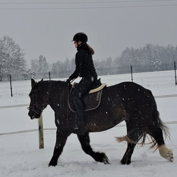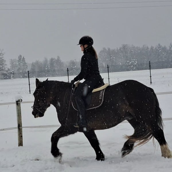 Beautiful mare in a special color!!! MALAJKA, 11 years old Approximately 1.56 m (16.1 hh) Polish cold blood with full pedigree. Perfect as a family horse, trail riding horse, or therapy horse. Under saddle, she moves in all three gaits and is comfortable riding alone in the terrain. She is familiar with lunging and enjoys going for walks. Atena loves children—grooming and leading are no problem. She is an absolute dream horse for children and adults alike. Easy to handle in daily interactions. She is fit, healthy, and free of any lameness. Suitable for open stable keeping, herd-compatible. Videos available. Transport can be arranged. Location: Lusatia, near Görlitz