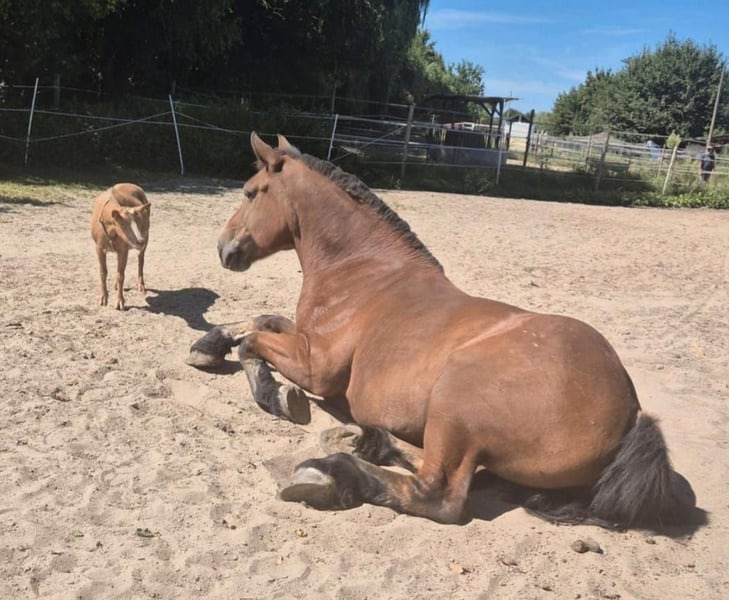 Liebe, zuverlässige polnische Kaltblutstute zu verkaufen Unsere wunderschöne Kaltblutstute sucht ein neues, passendes Zuhause. Sie überzeugt durch ihr ruhiges, freundliches Wesen. Sie ist dieses Jahr 11 Jahre alt geworden und 1,60 groß. ✨ Charakter & Haltung: Sehr sozial, steht aktuell im Offenstall in gemischter Herde (eine Stute, zwei Wallache). Lieb und freundlich. Ausbildung & Nutzung: Geritten und gefahren. Unter dem Sattel brav, unerschrocken und zuverlässig – besonders im Gelände ein echtes Verlasspferd! Auf dem Platz darf sie manchmal etwas motiviert werden, läuft dann aber willig mit. Englisch geritten. Sie braucht eine liebevolle aber konsequente Führung. Gesundheit: Hat ein leichtes Sommerekzem, das wir mit Ballistol gut im Griff haben. Zusätzlich bekommt sie Reforminmineralfutter. Es schrenkt nicht das Reiten ein! Ideal für: Freizeitreiter, gemütliche Ausritte, oder Kutschfahrten. Sie wurde eingefahren. Auch für Therapiezwecke geeignet! Ein tolles Pferd mit Herz, das einfach Freude macht! Sattel und trense kann mit erworben werden. Ein probereiten ist mäglich für 35 euro, das wird beim kauf natürlich verrechnet! Standort: büttelborn (worfelden) Bei Interesse gern melden – wir erzählen dir mehr! +49 173 6873289 bitte diese telefon nummer kontaktieren
