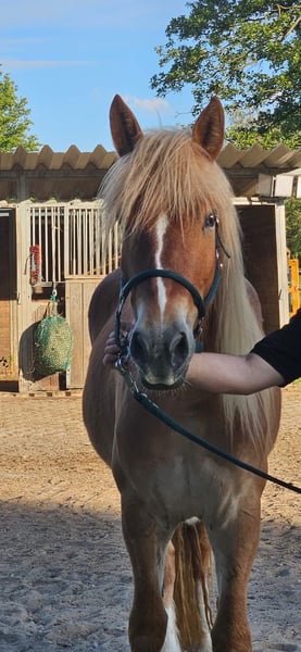 For sale is a 3-year-old mixed-breed mare, born and raised with us, and now backed under saddle. At just 3 years old, she is exceptionally well-behaved and rides very well with children, adult reiners, re-entry riders, and beginners alike, comfortably performing all three basic gaits. She is also confident in the field and excels in groundwork. Additionally, she walks superbly on the double longe, so we believe she could be ridden under saddle soon. She has also handled her first tasks in our riding school without any issues. We see Murmel as a wonderful family horse that will bring joy to everyone. If you would like to meet Murmel, please contact us at sandradott@gmx.de.