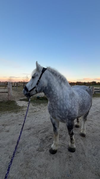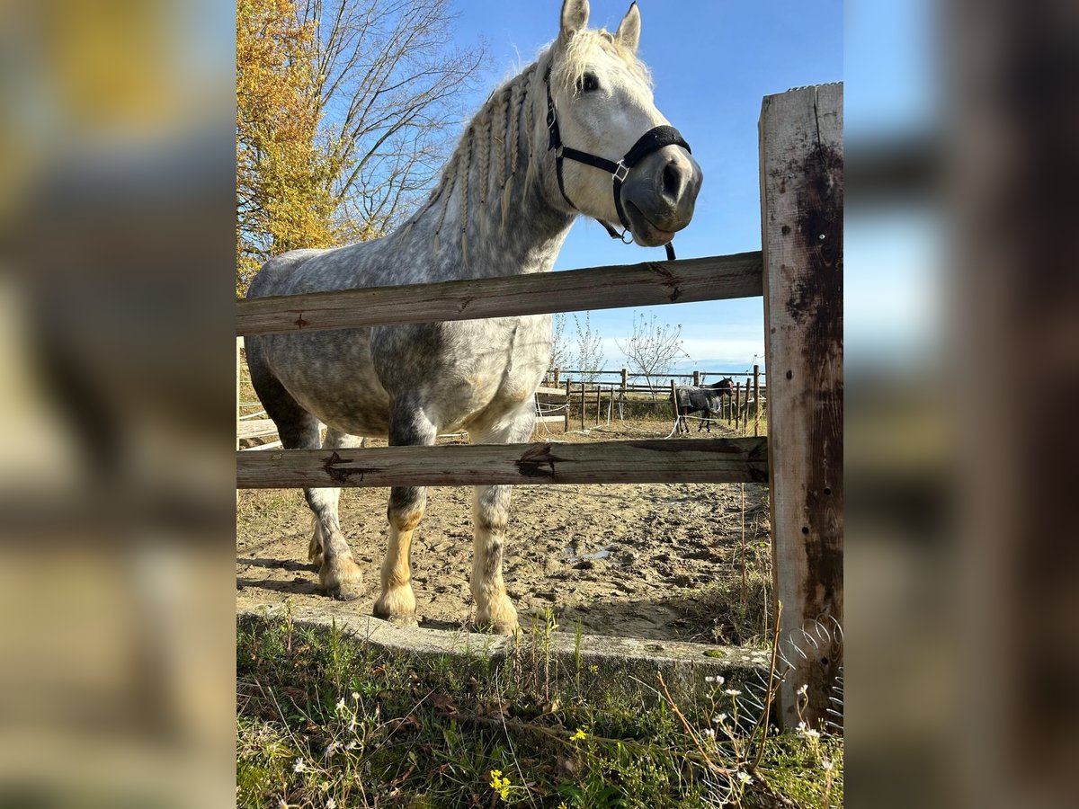 Verkaufe Polnisches Kaltblut (tragend) – Schimmelstute, geb. 2021 Zum Verkauf steht eine wunderschöne Polnische Kaltblut-Stute, die im Jahr 2021 geboren wurde. Da Sie noch jung ist, würden wir Sie als gut angeritten bezeichnen. Sie kennt longieren, Hufschmied und ist verladefromm. Achtung! Frieda ist Tragend! Das Fohlen soll voraussichtlich im Mai 2026 auf die Welt kommen. Der Vater ist ein Paint Horse, da es ein Unfall war, haben wir keine Papiere oder Auskünfte über den Vater. Gerne mehr im persönlichen Gespräch. Charakteristisch würden wir Frieda als freundlich und ausgeglichen bezeichnen. Allerdings kommt manchmal etwas das Stutige Verhalten durch, wobei Sie nie böse ist. Frieda wurde bei dem Vorbesitzer auch gefahren, wir selber haben dies aber nicht ausprobiert. Wir könnten uns Sie gut als Fahr Pferd, Freizeitpferd aber auch in Dressur oder Western gut vorstellen. Von daher ist Sie vielseitig einsetzbar. Momentan befindet sich Frieda in professionellen Training, daher wird sie momentan weiter fleißig ausgebildet, aber dadurch das Sie tragend ist momentan nicht mehr geritten, nur von Boden aus gearbeitet. Mit Frieda hat man bei guter Ausbildung, einen tollen Partner an seiner Seite! Sie ist gesund und hatte in unserem Besitz keinerlei gesundheitlichen Probleme. Ein Probereiten ist momentan nicht möglich, dadurch das Sie tragend ist. Wir haben aber einige Videos von ihr. Eine AKU ist jederzeit bei Kostenübernahme möglich.