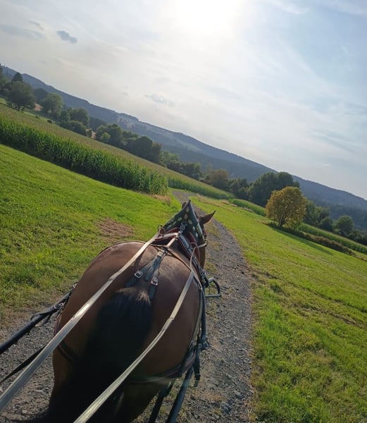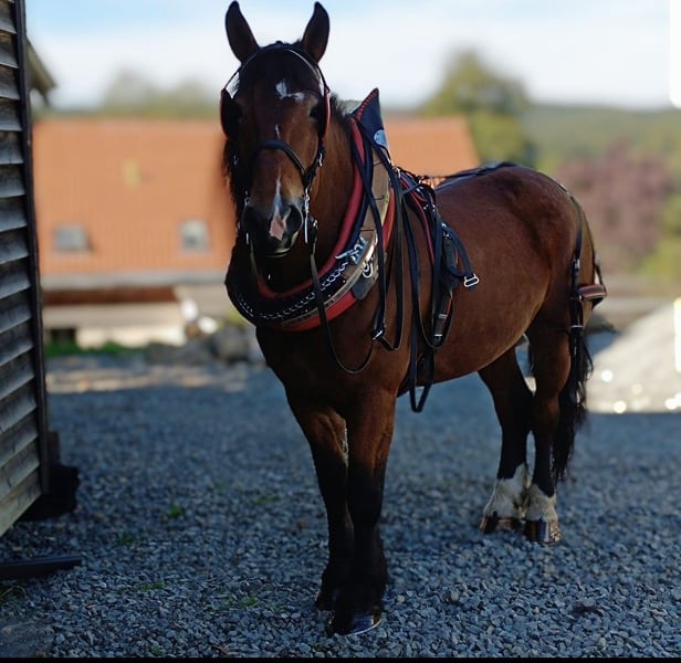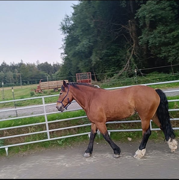 Verkaufe hier meine 8 jährige polnische Kaltblutstute im sportlichen Typ. Sie wird bei mir Einspänner gefahren, ist beim Züchter aber auch Zweispänng gelaufen. Sie ist zuverlässig und sicher vorm Wagen. Ich spannend sie auch alleine an und fahre mit ihr alleine aus. Beim reiten zeigt sie ihren sportlichen Typ und hat Spaß an kleinen Dressur Aufgaben. Sie geht alleine und in der Gruppe ins Gelände. Bodenarbeit und Logieren sind ebenfalls Bestandteil ihrer Ausbildung. Sie ist voll beschlagen, lässt sich super alleine verladen und ist beim Hänger fahren sehr brav. Sie ist nervenstark, keine Durchgängerin und zeigt schöne fleißige Gänge. Orientierungsritte und fremde Umgebung /Halle/ Reitplatz ist sie geowhnt. Sie einen typischen eigenwilligen Kaltblutkopf und testet ihr gegenüber gerne und oft aus. Eine durchsetzungsfähiger und konsequenter Umgang ist für Jaschka also sehr wichtig. Sie kennt Offenstall und Bodenhaltung und ist mit Stuten und Wallachen verträglich. Zähne wurden in April gemacht, Tetanus Impfung ist aktuell. Wer also eine Freizeitpartner mit pfiff für Fahren und Reiten sucht hat mir ihr Kollege in n tollen Partner an der Seite. Equipment wie Kutsche, satttel, Trense, Geschirr ect können mit erworben werden.