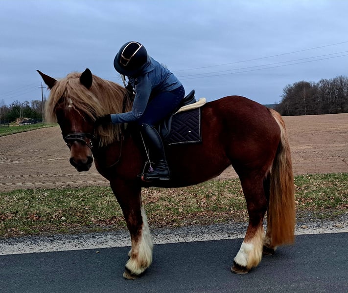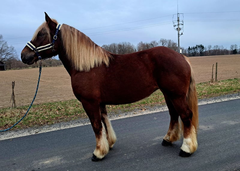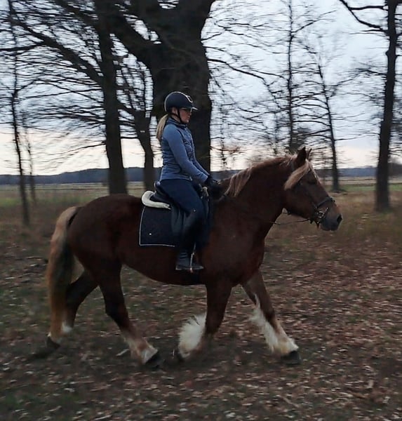 Wunderschöne, großramige Stute Didi - Kaltblut ca. 1,66 m. 7 j.a. Freizeitmässig geritten und gefahren. Sie war benutzt in Kutsche als Lehrmeisterin für junge Pferde. Perfekt als Familienpferd/ Geländepferd/ als Therapiepferd. Sie geht unter Sattel in alle 3 GGA, geht alleine ins Gelände. Kennt Longe, mag gerne Spazieren gehen. Ist Verlass und absolut unerschrocken. Didi mag gerne Kindern- putzen, führen ist kein Problem. Sie ist absolut ein Traumpferdchen für Kindern und Erwachsene. In Umgang ist unkompliziert. Sie ist fit, gesund, ohne Mankos. Offenstall geeignet, Herdenverträglich. Videos vorhanden Transport möglich.