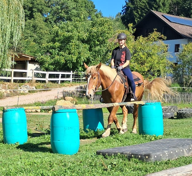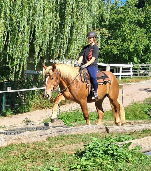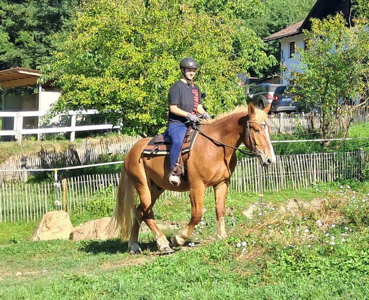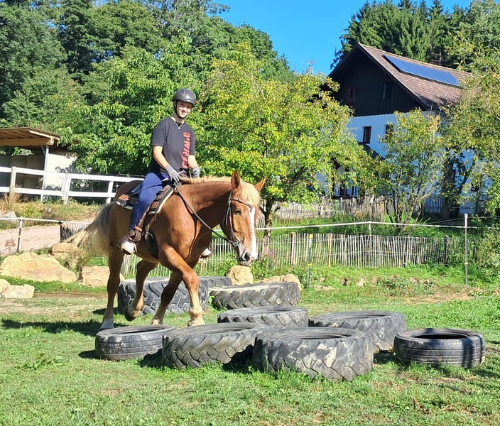 Rössli is a cuddle-worthy horse! People-oriented gelding with a friendly temperament, born and trained with us, robust, healthy, well-socialized, easy to ride, comfortable to sit on, knows nothing bad, trailer loading, farrier, etc. everything is top-notch, ready for new adventures, 3 years old, final height 163 cm. For trail riding, outdoor riding, and leisure riding. Both English and Western riding are possible. Accustomed to open stabling and herd living, a box stall is also no problem. Equine passport available. All our horses are familiar with groundwork, various terrains, cars, agricultural machinery, as well as cows, donkeys, sheep, pigs, dogs, cats, and chickens. For information and appointment scheduling, please call 08536-2890292 (voicemail available) or 0157-78378455 (no mobile network at the stable). Please no private messages, emails, or WhatsApp inquiries!! Sunday is a day off. Accessories and transport can be arranged at a low cost. Every customer is granted a contractual right of exchange for 6 weeks. Prices are fixed prices. No inquiries for installment payments are welcome. Those who come with a trailer and take the horse will receive a €100 discount. Upon purchase, a deposit of €1000 in cash is required. Anyone who wants to take the horse immediately must, of course, pay in full. We conduct a ride with customers on two horses of your choice, so you can get to know your dream horse and check if it is the right horse for you. Each appointment costs €35, regardless of whether riding, showing, preparing, or walking... each additional rider (friend, sister, trainer...) pays the same if they ride along, just watching costs us time and thus €20. The amount will be refunded on the same day when purchasing a horse. Due to multiple occurrences, we kindly ask for truthful information regarding the rider's weight. In case of untruthful information, we reserve the right to decline a test ride on-site. For the sake of our horses, we do not want to burden our well-built horses with more than 120 kg. As this is a living animal, these are merely impressions from the caretaker and not guaranteed properties of the horse. Further horses/ponies are available in my other ads or upon request.