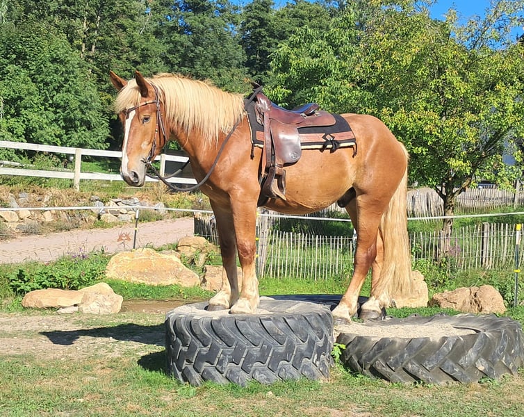 Rössli is om te knuffelen! Mensgerichte ruin met een vriendelijk karakter, bij ons geboren en opgeleid, robuust, gezond, uitstekend gesocialiseerd, makkelijk te rijden, zit comfortabel, kent niets slechts, trailer rijden, hoefsmid, enzovoort, alles top, klaar voor nieuwe avonturen, 3 jaar, eindhoogte 163 cm. Voor wandel-, terrein- en recreatief rijden. Engels en western is beide mogelijk. Gewend aan open stallen en groepshuisvesting, een box is ook geen probleem. Equidenpas aanwezig. Al onze paarden kennen grondwerk, verschillende terreinen, auto’s, landbouwmachines, evenals koeien, ezels, schapen, varkens, honden, katten en kippen. Informatie en afspraak maken via 08536-2890292 (antwoordapparaat aanwezig) of 0157-78378455 (geen mobiel netwerk op de boerderij). Geen privéberichten, e-mail en WhatsApp aanvragen!! Zondag is rustdag. Accessoires en transport zijn tegen een voordelige prijs mogelijk. Elke klant krijgt een contractueel vastgelegd omruilrecht van 6 weken. Prijzen zijn vaste prijzen. Geen verzoeken om betaling in termijnen gewenst. Wie direct met een trailer komt en meeneemt, ontvangt 100€ korting. Bij aankoop is er een aanbetaling van 1000€ contant verschuldigd. Wie het paard direct mee wil nemen, moet uiteraard volledig betalen. We maken met de klanten een rit met twee paarden naar keuze, zodat jullie jullie droompaard kunnen leren kennen en kunnen controleren of het het juiste paard voor jullie is. Elke afspraak kost 35€, ongeacht of het rijden, voorrijden, voorbereiden, wandelen ... elke extra ruiter (vriendin, vriend, zus, trainer...) betaalt hetzelfde als hij meereist, alleen kijken kost ons ook tijd en dus 20€. Het bedrag wordt bij de aankoop van een paard op dezelfde dag terugbetaald. Vanwege herhaalde incidenten vragen we om waarheidsgetrouwe informatie over het ruitergewicht. Bij onjuiste informatie behouden we ons het recht voor om ter plaatse te besluiten geen proefrit te maken. Voor het welzijn van onze paarden willen we ook onze goed gebouwde paarden niet meer dan 120 kg toemeten. Aangezien het hier om een levend dier gaat, zijn dit slechts indrukken van de verzorgers en geen gegarandeerde eigenschappen van het paard. Meer paarden/pony's in mijn andere advertenties of op aanvraag.