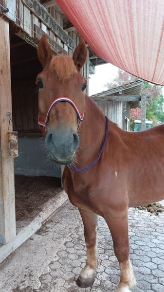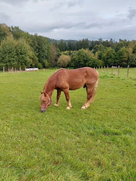 Im Auftrag: Verkaufe meinen 7-jährigen polnischen Kaltblutwallach Baron. Er ist erst seit kurzem bei mir, nur leider entsprachen die Aussagen des Vorbesitzers nicht der Wahrheit. Baron ist ein charakterstarkes Pferd, welches definitiv noch Erziehung von anderen Pferden aber auch größeres Vertrauen zum Menschen braucht. Mir wurde er als absolutes Verlasspferd / Therapiepferd verkauft, dies entspricht aber meiner Meinung nach nicht der Wahrheit. Im Umgang ist er aber definitiv sehr unerschrocken. Wir sind bis jetzt nur kurz auf dem Platz geritten, da er bei uns einfach total unbemuskelt ankam und er erst wieder auftrainiert werden müsste. Aufgrund dieser Tatsache würde ich ihn tatsächlich eher "nur" als angeritten verkaufen an einen Menschen, der mit Ruhe aber trotzdem konsequent diesem Pferd eine neue Chance gibt. Er ist im Umgang ein totaler Schmuser, kann aber, wenn es nicht nach seiner Nase läuft auch mal etwas dominant sein - dies bessert sich aber aktuell auch schon. Ich wünsche mir für ihn einen Platz entweder in der Box mit täglichem Auslauf oder im Offenstall, mit einem ranghohem Leitpferd. Als er bei uns in die Herde kam, gab es tatsächlich mit den anderen Pferden keinerlei Probleme er zeigte sich sehr verträglich. Bei den Pferden nebenan, war er etwas dominanter, dies kam aber eher rüber als ober er "Angst" um seine neue Herde hätte. Aktuell befindet er sich von der Rangordnung her in der Mitte. Der Preis für dieses Pferd ist Verhandlungsbasis, da uns ein guter Platz wichtiger ist. Zähne, großes Blutbild & Tetanusimpfung wurden am 08.10.25 gemacht - Hufschmied ist fällig. Videos sind vom Vorbesitzer.