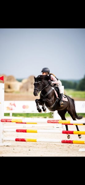 A pony with solid sport experience – she has competed in DiM shows and took part in the Polish Indoor Championships. She regularly competes in the A2 category and has numerous successful rounds at 85–95 cm, typically receiving very good style scores of 1–1.5 points. She is currently training mainly for show jumping, but she would also be an excellent fit for eventing. Very well-behaved during all grooming and handling, and easy to transport. Under saddle she is comfortable, willing, and cooperative – she does not run out, jumps confidently, and stays focused without being bothered by distractions. She combines strength and bravery with a calm mindset; she is reliable and safe out in the open. Sound, with no history of injuries, shod in front. She will be perfect for a child who wants to begin competing and gradually progress to higher levels. Location: Kanie, Mazowieckie Contact: +48 508 016 090 – please text via SMS/WhatsApp