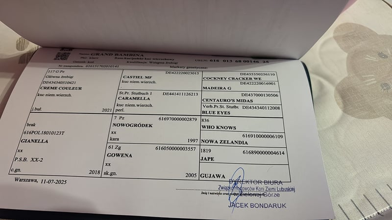 Großer Pony, Endmaß ca. 146,8 cm. Die Mutter ist eine Vollblutaraberstute, Tochter des Hengstes Nowogródek, von der Mutter abgeleitet von Jape. Der Vater ist Crème Couleur – Nachkomme eines Europameister-Medaillengewinners. Die Stute wurde auf der Weide großgezogen. Gut gebaut, bewegungsstark und korrekt im Fundament. Standort: 66-320 Trzciel Kontakt: 668 932 733
