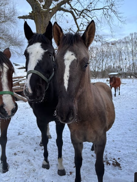 Duży kuc, wzrost docelowy 146/8 cm. Matka pełnej krwii angielskiej to córka ogiera Nowogródek, od matki po Jape. Ojcem jest Crème Couleur - potomek medalisty Mistrzostw Europy. Klaczka wychowana na wolnym wybiegu. Poprawnie zbudowana, dobrze ruszająca się. Lokalizacja 66-320 Trzciel Kontakt : 668 932 733