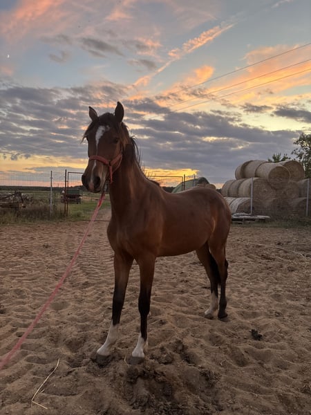 Z ogromną przyjemnością oferuję na sprzedaż klacz o imieniu Arizona S – piękną, elegancką i pełną energii klacz z dużym potencjałem! 📍 Informacje podstawowe: • Imię: Arizona • Rasa: p.k.w ( polski kuc wierzchowy) • Wiek: półtora roku • Maść: Gniada 🧠 Charakter i użytkowość: Arizona S to klacz o zrównoważonym temperamencie, inteligentna, chętna do pracy z człowiekiem. Super koń z cudownym sercem. Jej uroda skrada nie jedno spojrzenie. 🏇 Ruch i predyspozycje: Prezentuje bardzo ładny, elastyczny ruch – dynamiczny galop, efektowny kłus oraz dobry takt i naturalną równowagę. Posiada predyspozycje sportowe oraz ujeżdżeniowe. 📸 Zdjęcie wykonane na świeżym powietrzu pokazuje Arizonę S w ruchu – dynamiczną, zdrową i w doskonałej kondycji. 🩺 Stan zdrowia: • Regularnie werkowana i odrobaczana • Zdrowa, bez kontuzji • Bez narów oraz wad