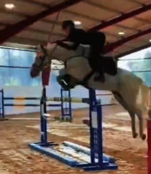 This pony jump 120 fences. Nice to ride out in the traffic and forest. Well riden in dressage. Easy to load on transport. Goes well with other horses. Nice to handle.