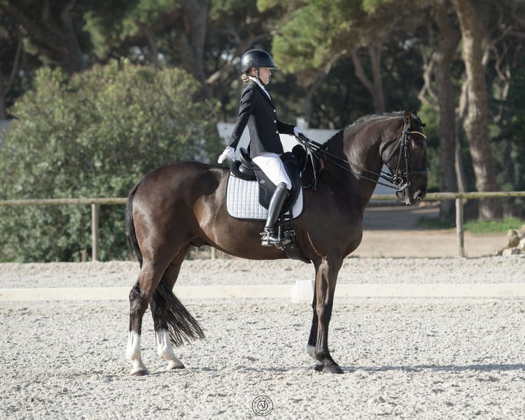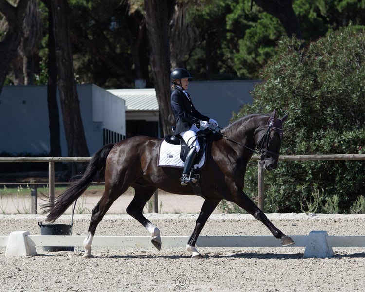 Brilliant training partner and best friend for sale just outside Lisbon. Jez is a Lusitano x Warmblood cross (Zinfonico x De Niro), gelding born in 2014. He is educated up to PSG and has done well competing at Advanced level. Jez is a horse you can trust; he absolutely loves to work and is very safe. He is, however, a sensitive horse with "many gears and buttons," and is therefore not suitable for absolute beginners. He measures 171 cm but is like riding a sofa. Due to a suspensory injury in early 2024, Jez is offered at a very attractive price. He is fully recovered, has been back in full training for about a year, and has passed a complete veterinary check, including flexion tests. This is a fantastic opportunity to acquire a high-quality schoolmaster for a great price. We are looking for a home where Jez can enjoy a varied routine: dressage training, some competitions, hacking, and daily turnout. This horse has a truly special soul, and a five-star home is more important than the price. Please text or call for more info and videos. We speak Swedish, English, and Portuguese. Jez is located near Lisbon, Portugal. Call: +351 969283612 WhatsApp: +39 366 4047 846