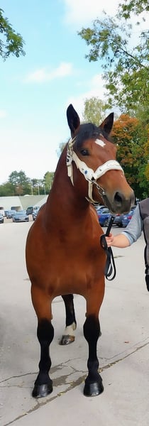 Wij verkopen onze bruine Zuid-Duitse koudbloedhengst Prinz, geboren in 2023. Vitali x Dorian PSSM VRIJ Hij heeft momenteel een stokmaat van 1,63 m. Hij is smid- en transporteerbaar, rustig en evenwichtig in de omgang. Naar leeftijd begrijpt hij longe en handwerk, en wordt nu verder opgeleid. Bij interesse kunt u telefonisch contact opnemen via 0151 23727001.