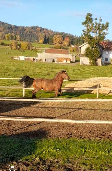 Wir verkaufen unseren braunen Süddeutschen Kaltblut Hengst Prinz, 2023 geboren. Vitali x Dorian PSSM FREI Momentan hat er ein Stockmaß von 1,63 m. Er ist schmiede- und verladefromm, ruhig und ausgeglichen im Umgang. Dem Alter entsprechend kennt er die Longe und Handarbeit, nun wird er weiter zum Fahrpferd ausgebildet. Bei Interesse telefonische Anfragen unter 0151 23727001.