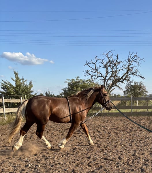 Wegen Bestandsminderung suche ich für meinen Süddeutschen Kaltblut Wallach „Muck“ ein neues Zuhause. Muck ist 2,5 Jahre alt, und wurde im Oktober mit 1,65 cm gemessen. Er ist dem Alter entsprechend longiert, leicht gefahren und kennt den Sattel schon. Vancouver x Velox PSSM frei Bei Interesse gerne melden.