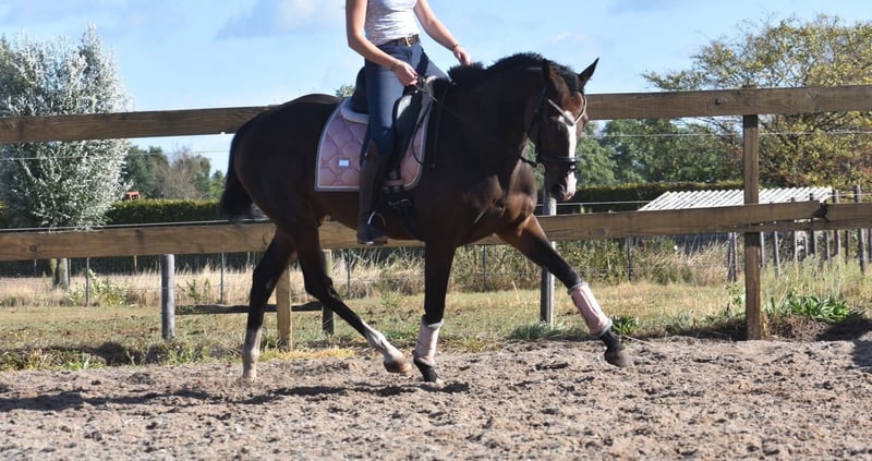 Eyecatcher: superbrave 9 jarige rijpaardmerrie Paddy is een 9 jarige dame van ca. 1.62m hoog, met een afstamming van Leading Light x Caoba by Hernando ( FR) Ze heeft een chique, maar toch degelijke bouw met mooie lange benen en laat zich hier fijn rijden. Wij konden door omstandigheden een lange tijd haar niet rijden en konden zó weer op haar wegrijden, ze is hier superbraaf. Daarbij heeft ze een zacht mondje en reageert ze fijn op de hulpen. Een zware hand is bij haar absoluut niet nodig maar ze is hier ook niet te gevoelig of te rillerig. Paddy is hier verkeersmak, gezond en vrij van gebreken. Voor de fokkerij is ze eveneens zeer interessant! Verder is ze ontzettend sociaal in de groep, de omgang en op stal. Is onlangs door de tandarts behandeld, in bezit van een recent rapport. Prijs € 6450,- incl merkzadel en dekje