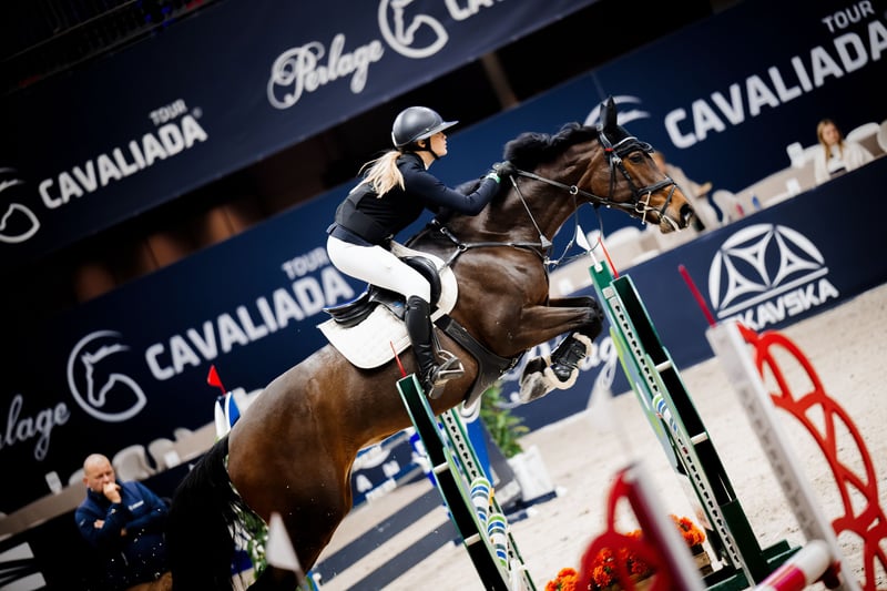 Te koop: een prachtige Wielkopolska merrie, geboren in 2016. Bruin van kleur, met een hoogte van 167 cm. Uitstekend geschikt voor springen, goed uitgebalanceerd in dressuur. Ze beheerst zijgangen, aanleuning, verzameling, verlenging, vliegende wissels en andere piaffe- en passage-achtige bewegingen. Ideaal voor ruiters die een paard zoeken om te introduceren in de dressuur tot 120 cm, met potentieel voor veel meer. Momenteel gereden door een jonge amateurruiter, die haar heeft voorbereid van de overstap van een pony naar wedstrijden in de klasse N. Ze is bekend met springparcoursen op CSI-niveau. Tijdens haar laatste CSI-Am-wedstrijd behaalde ze de eerste plaats. Als jonge merrie won ze medailles in vrijspringen en behaalde ze overwinningen in vaardigheidstests voor merries. Neem contact met ons op voor een bezichtiging en een proefrit!