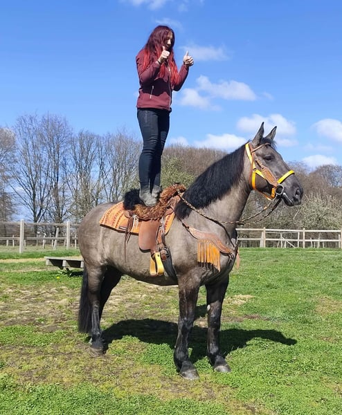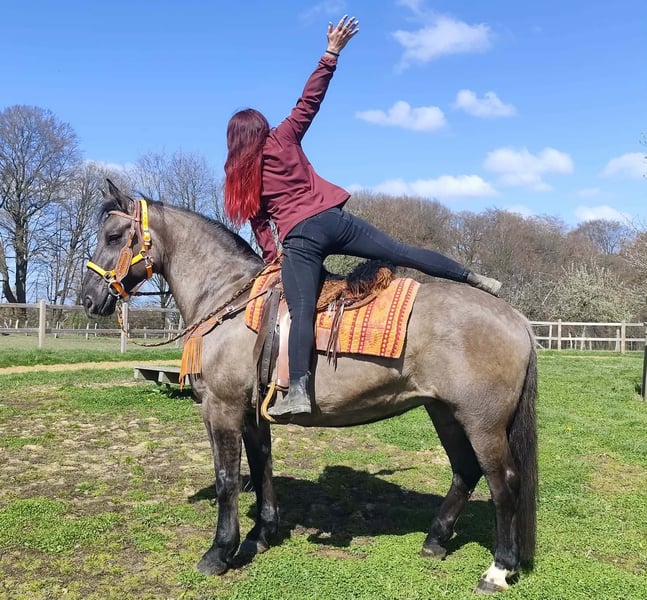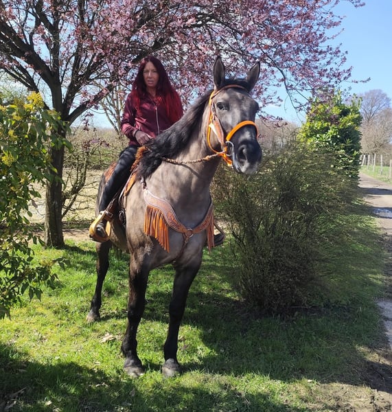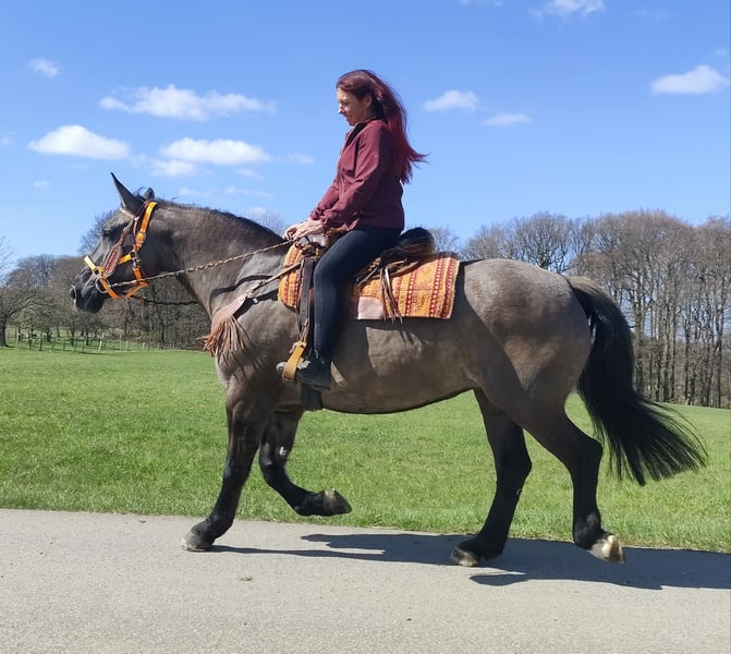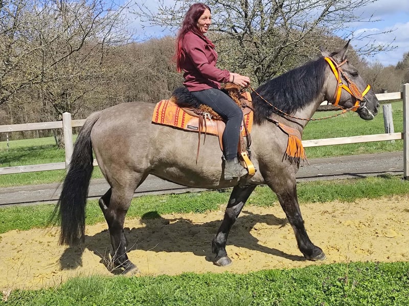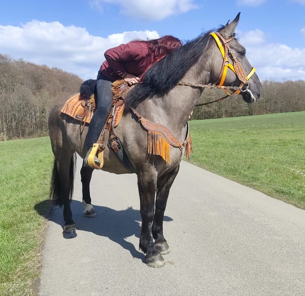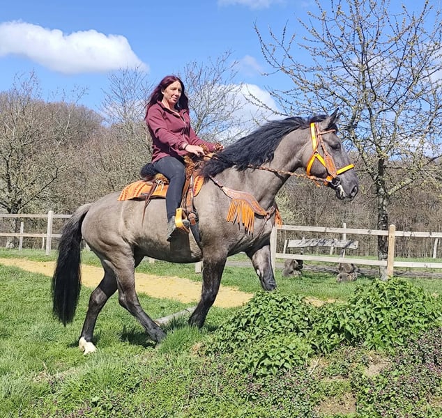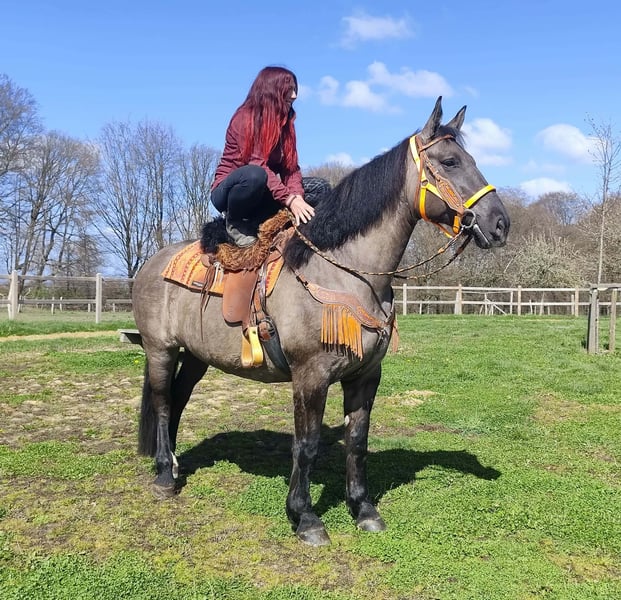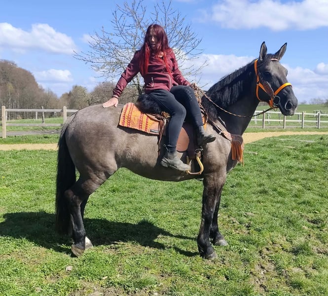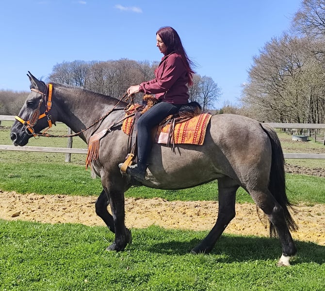 Wunderschöne Grullo-Stute – brav, zuverlässig & angenehm zu reiten Name: Malwina Alter: 11 Jahre Geschlecht: Stute Stockmaß: ca. 1,64 m Farbe: Grullo (Sonderfarbe) Preis: 7500,- AKU: vorhanden Beschreibung: Malwina ist eine wunderschöne, kräftige Stute in der Sonderfarbe Grullo. Sie überzeugt nicht nur optisch, sondern vor allem durch ihr ausgeglichenes und freundliches Wesen. Im täglichen Umgang ist sie absolut brav und unkompliziert. Putzen, Führen und Satteln verlaufen ruhig und problemlos – sie ist zuverlässig und angenehm im Handling. Auch unter dem Sattel zeigt sich Malwina von ihrer besten Seite. Sie ist super zu reiten, fein an den Hilfen und vermittelt ihrem Reiter ein sicheres und angenehmes Gefühl. Ihr ausgeglichenes Temperament macht sie zu einer tollen Partnerin für entspannte Ausritte und den Freizeitbereich. Geeignet für: Freizeitreiter, Wiedereinsteiger oder Reiter, die ein zuverlässiges und gutmütiges Pferd suchen. Pflege & Betreuung: – Regelmäßig entwurmt – Schmied gepflegt – Tierärztlich betreut Zusatzangebote: Sättel, Trensen und weiteres Zubehör erhältlich Service: – Transport kann organisiert werden – 3 Monate Umtauschrecht Proberitt: – 35 € (jedes weitere Pferd 25 €) – Wird beim Kauf am selben Tag angerechnet Preisnachlass bei sofortiger Mitnahme oder Transport am gleichen Tag: – Kategorie 1: 100 € – Kategorie 2 (ab 5.000 €): 250 € Telefon: 0171 – 4001968 Erreichbarkeit: täglich von 8–20 Uhr Keine E-Mail oder WhatsApp Alle Angaben ohne Gewähr