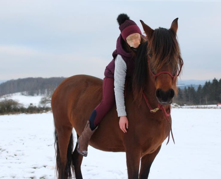 Candela ist gesund, barhuf und robust gehalten – unkompliziert im Alltag. Aufgrund eigenen Nachwuchses muss ich mich schweren Herzens von meiner Stute trennen und wünsche mir für sie ein liebevolles, passendes Zuhause. Candela ist freundlich, neugierig und sehr menschenbezogen. Im Umgang zeigt sie sich brav und geduldig, lässt sich problemlos striegeln – auch von Kindern. Hat man ihr Vertrauen gewonnen, ist sie eine loyale Partnerin, die mit einem durch dick und dünn geht. Sie ist fein zu reiten, lernt schnell und ist offen für Neues. Dabei bringt sie einen starken, ehrlichen Charakter mit. In der Bodenarbeit ist sie sehr gut ausgebildet und hat große Freude an der Freiarbeit. In der Gruppe – auch mit fremden Pferden – ist sie absolut unkompliziert und angenehm zu reiten. Im Gelände ist sie alleine noch unsicher, hat sich mit mehr Routine aber bereits deutlich verbessert. Hier braucht sie eine ruhige, sichere Bezugsperson, die ihr Zeit zum Ankommen gibt und ihr Vertrauen in Ruhe aufbaut. Bei zu viel Druck reagiert sie mit Gegendruck. Candela ist daher kein Anfängerpferd und testet anfangs auch, ob man es wirklich ernst meint. Mit Klarheit, Geduld und Gefühl entwickelt sie sich jedoch zu einem tollen, verlässlichen Partner. Aufgrund ihres Potenzials wünsche ich mir für sie, dass sie in fördernde Hände kommt - passender Sattel und Trense können gerne gegen Aufpreis übernommen werden.