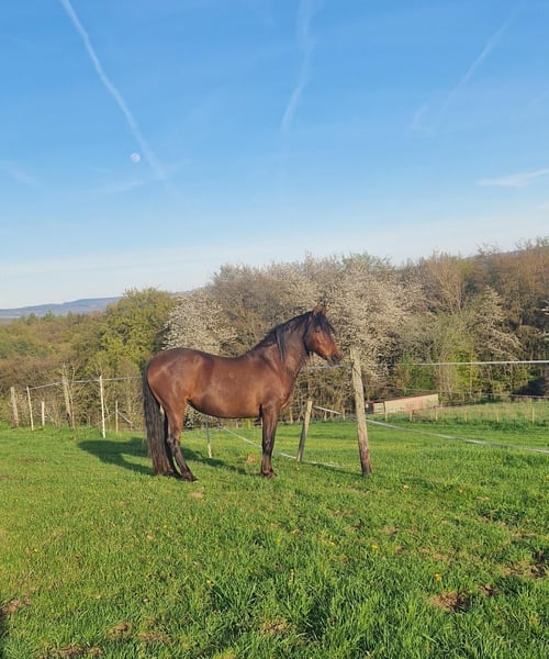 Candela is healthy, barefoot, and robustly kept – straightforward in everyday handling. Due to her own offspring, I have to part with my mare, and I wish for her a loving, suitable home. Candela is friendly, curious, and very human-oriented. She is well-behaved and patient in handling, easily groomed – even by children. Once she has gained trust, she becomes a loyal partner who stands by you through thick and thin. She is sensitive to riding, learns quickly, and is open to new experiences. She also has a strong, honest character. In groundwork, she is very well-trained and enjoys liberty work greatly. In a group – even with unfamiliar horses – she is absolutely uncomplicated and a pleasure to ride. In the field, she is still somewhat unsure when riding alone, but with more routine, she has already improved significantly. She needs a calm, confident handler who gives her time to settle and builds her trust gently. When pressured too much, she reacts with resistance. Candela is therefore not suitable for beginners and may initially test whether her rider is serious. However, with clarity, patience, and sensitivity, she develops into a wonderful, reliable partner. Due to her potential, I hope she finds a nurturing home – a suitable saddle and bridle can be provided at an additional cost.