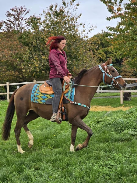Leisure Mare - Mix Mare for Leisure and Trail Riding* *Age*: 12 years, ridden *Height*: approx. 1.55 m *Equipment*: E-pass, microchip, and veterinary check available *Price*: €5400 A beautiful mare that is ideal for trail and leisure riding. She is a versatile leisure horse, suitable for both English and Western riding. She has a wonderful, balanced temperament and feels comfortable in a herd, but also does well in a stable. ### *What Makes Her Special:* - Used to open stable and herd living; box living is also not a problem - Ideal for leisure and trail riders - Very balanced and uncomplicated to handle *Interested?* Feel free to call us at *0171-4001968* (daily from 8 AM to 8 PM). *Please no emails or WhatsApp, only calls!* *Additional Information:* - Accessories and transport can be organized at a low cost. - Our farm shop offers a small selection of used Western saddles. - *Installment payments are not possible.* *Customer Service:* - Every customer receives a contractually guaranteed *three-month exchange right.* - A test ride with us is possible, so you can get to know your dream horse. For €35, you can ride, have her ridden for you, go for a walk, or more. If desired, you can also test a second horse for €25. This amount will of course be deducted from the purchase price of a horse on the same day. *Special Features:* - If picked up immediately with a horse trailer, you will receive *a discount of €100.* - We conduct the sale with a transparent test ride to ensure it is the right horse for you. *Legal:* - We are the sole and unrestricted owners of the images; the image rights are with us. *Unauthorized use of the images is prohibited.* - Please note that this is a living horse. Our information is based on the impressions of the caretaker and does not constitute guaranteed characteristics. - Advertisements will be deleted immediately once the horses are sold. *Interested?* Feel free to call us at *0171-4001968* (daily from 8 AM to 8 PM). *Please no emails or WhatsApp, only calls!*