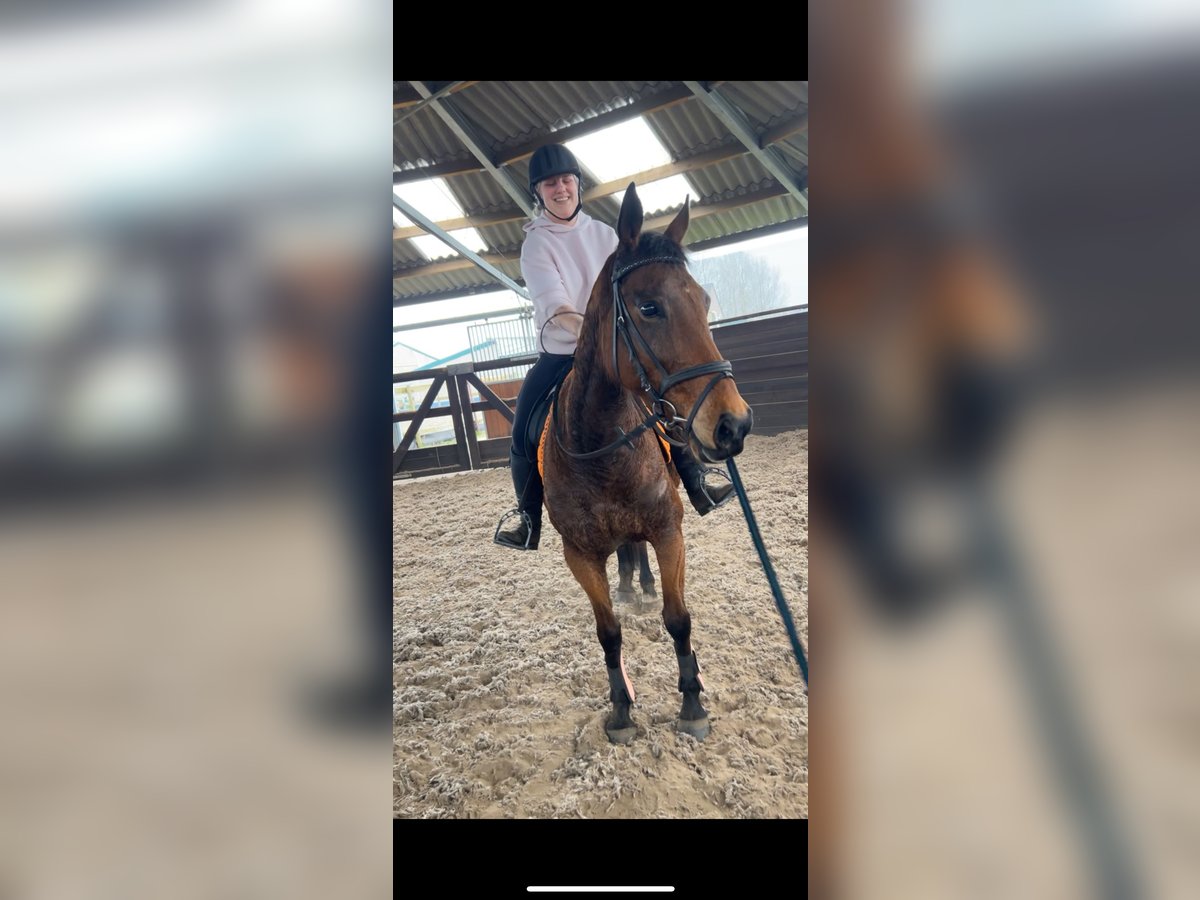 Ontmoet Sarah, een prachtige merrie van 12 jaar oud met een stokmaat van ongeveer 1.60 m. Ze heeft de afstamming Flemensfirth x Ability To Burn en beschikt over een mooie rijpaardbouw met een fijn, vriendelijk hoofdje. Toen Sarah bij ons kwam was ze niet bang, maar wel wat voorzichtig richting mensen. We merkten al snel dat ze gewoon wat tijd nodig had om vertrouwen te krijgen. Inmiddels is ze helemaal opengebloeid en laat ze haar lieve karakter zien. In de stal en op de poetsplaats staat ze vaak met haar oortjes vrolijk naar voren, nieuwsgierig kijkend wat je aan het doen bent. Ze geniet van aandacht en een knuffel slaat ze zeker niet af. We zijn inmiddels ook weer op haar gestapt en dat pakt ze super goed op, alsof ze nooit heeft stilgestaan. Ze is fijn in de omgang en pakt het werk weer netjes op. Sarah is een leuke merrie voor iemand die met haar verder aan de slag wil en samen een band wil opbouwen. Wie geeft deze lieve merrie haar nieuwe thuis? 💰 Prijs: €3950 Inclusief merkzadel