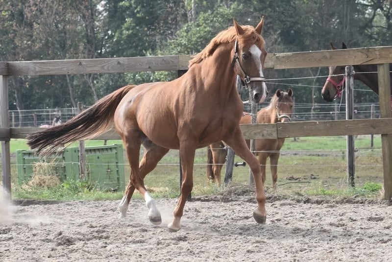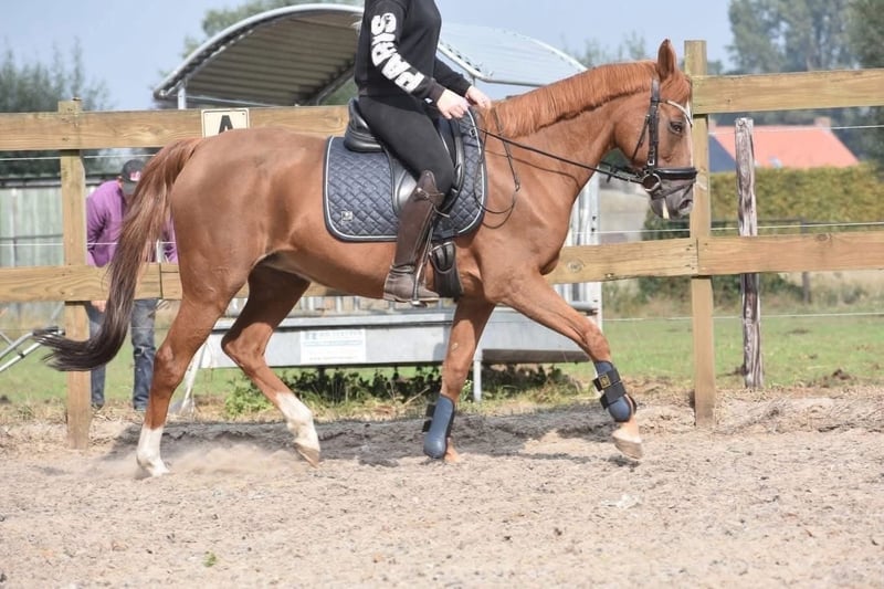Sissi is een pracht van een paardje! Lekker vol en ze glanst je tegemoet. Ze is hier en voorheen superbraaf gereden. Het is een E merrie van ca 153 m , toont groter door haar body. Sissi is ouder, geboren 31-05-2006, maar kerngezond en vrij van stalgebreken. Ze is onlangs gekeurd inclusief bloedafname , en geschikt bevonden voor de recreatie. Ze heeft een volle stamboom van Fortuna C Chenu x Pershing. Sissi is hier te verzorgen en te berijden door beginnende ruiters. Prijs 2750,- incl. goed merkzadel en dekje.