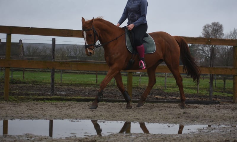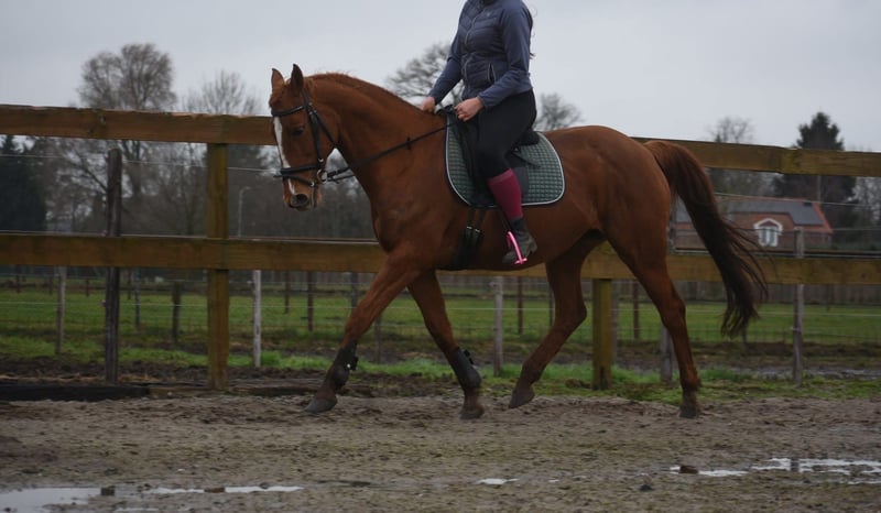 Wunderschöne, anfängersichere und erfahrene Reitpferdestute Dana ist wirklich ein Blickfang. Sie hat eine wunderschöne goldene Fuchsfärbung, eine elegante Konstitution und ein ansprechendes Köpfchen. Ihre Vorbesitzer haben hauptsächlich draußen mit ihr geritten. Dennoch hat sie hier von Anfang an im Dressurviereck sehr brav und zuverlässig gearbeitet. Sie wurde 2007 geboren, sieht aber top aus – man würde ihr dieses Alter auf keinen Fall ansehen. Dank ihrer Erfahrung ist sie ideal, um einen Reitanfänger sicher zu begleiten, oder auch für jemanden, der einfach ein unkompliziertes Pferd sucht. Dana ist ca. 1,60 m groß. Sie besitzt eine gute Abstammung: Dow Jones Courcel (AP) x Shardari x Little Credit. Es ist also durchaus möglich, dass sie noch ein Fohlen bekommt, falls man noch ein weiteres Nachwuchspferd bei ihr zeugen möchte. Wusstest du, dass Pferde bis ins hohe Alter trächtig werden können? Sie haben keine Menopause wie wir Menschen. Auf jeden Fall ist Dana eine perfekte Partnerin. Liebenswert, sozial, unkompliziert, bei uns und vorher auch trensport- und verkehrssicher. Preis: 3.950 € inklusive Markenreitkappe und kompletter Trense