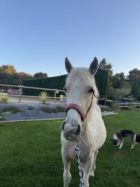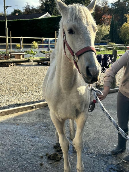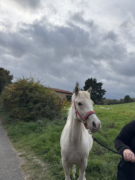 Guten Tag, ich verkaufe Plume EFJ. Sie ist eine Fohlen, geboren am 26. Januar 2025. Sie ist ein bezauberndes Mädchen, aber noch ein Baby. Sie hat bereits den Hufschmied und den Tierarzt gesehen. Sie ist aktuell bei den Impfungen und wäre perfekt für die Freizeitreiterei.