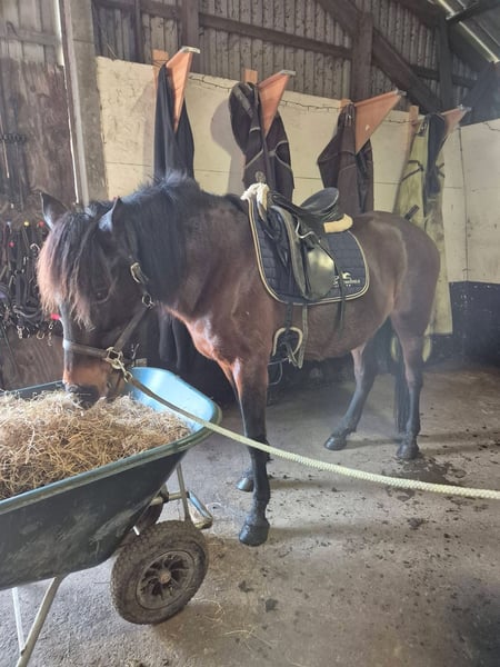 Hope Cavalla puledra di colore castano scuro, quasi nera, nata il 3 marzo 2025. Ascendenza: Padre: stallone Frisone (vedi ultima foto) Madre: importata dalla Spagna, attualmente impiegata in scuola di equitazione (foto 4 e 5) Altezza prevista al termine della crescita: circa 160–165 cm. Hope è una puledra amichevole, curiosa e molto socievole con le persone. Si mostra attenta e si avvicina volentieri agli umani. Per la sua età, è molto ben preparata per le normali attività quotidiane. Addestramento e gestione: - Si lascia tranquillamente legare - Si lascia spazzolare e toccare ovunque - Si fa facilmente mettere i ferri e pulire gli zoccoli - Sa stare da sola nella stalla - Si lascia condurre da diverse persone - È abituata a macchinari (ad esempio trattore) - Ha già fatto alcune prime esperienze tranquille con il trailer - Conosce i maiali da cortile come vicini Regolarmente curata dal maniscalco e attualmente sverminata. Hope possiede ottime potenzialità per un’ulteriore formazione adeguata all’età e si presta come cavallo da passeggio o da dressage. Località: 6240 Løgumkloster, Danimarca
