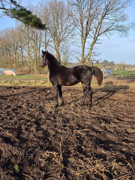 Hope Dunkelbraunes, nahezu schwarzes Stutfohlen, geboren am 03.03.2025 Abstammung: Vater: Friesenhengst (siehe letztes Foto) Mutter: aus Spanien importiert, derzeit im Reitschulbetrieb eingesetzt (Foto 4 + 5) Erwartetes Endmaß: ca. 160–165 cm Hope ist ein freundliches, neugieriges und menschenbezogenes Fohlen. Sie zeigt sich aufmerksam und kommt gerne auf Menschen zu. Für ihr Alter ist sie sehr gut im täglichen Umgang vorbereitet. Ausbildung & Umgang: • steht ruhig angebunden • lässt sich putzen und überall anfassen • Hufe geben und reinigen problemlos • kann selbstständig in der Box stehen • lässt sich von verschiedenen Personen führen • an Maschinen (z. B. Traktor) gewöhnt • erste ruhige Anhängererfahrungen • kennt Freilandschweine als Nachbarn Regelmäßig vom Schmied betreut und aktuell entwurmt. Hope bringt sehr gute Voraussetzungen für eine weitere altersgerechte Ausbildung mit und eignet sich als Freizeit- oder Reitpferd. Standort: 6240 Løgumkloster, DK