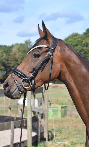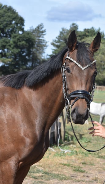 Hier is Yvy, een prachtige jonge dame van 3,5 jaar oud met een stokmaat van ca. 1.55m. Haar afstamming is Doyen x Little Nugget. Ze heeft een chique, elegante bouw en weet zeker de aandacht te trekken zodra je de stallen binnenloopt. Ze heeft een ontzettend lief en eerlijk voorkomen. Ivy heeft 3 fantastische gangen en is daarmee geschikt voor meerdere takken van de sport. Ondanks haar jonge leeftijd pakt Yvy het werk hier heel goed op. Ze werkt graag samen met haar ruiter en doet haar best om alles zo goed mogelijk te begrijpen. Momenteel wordt ze bij ons dressuurmatig en recreatief doorgereden en laat ze daarbij een fijne instelling en veel potentie zien. Ze is geheel vrij van gebreken. In bezit van zeer recent keuringsrapport inclusief bloedafname. Prijs 3950- incl. merkzadel en dekje