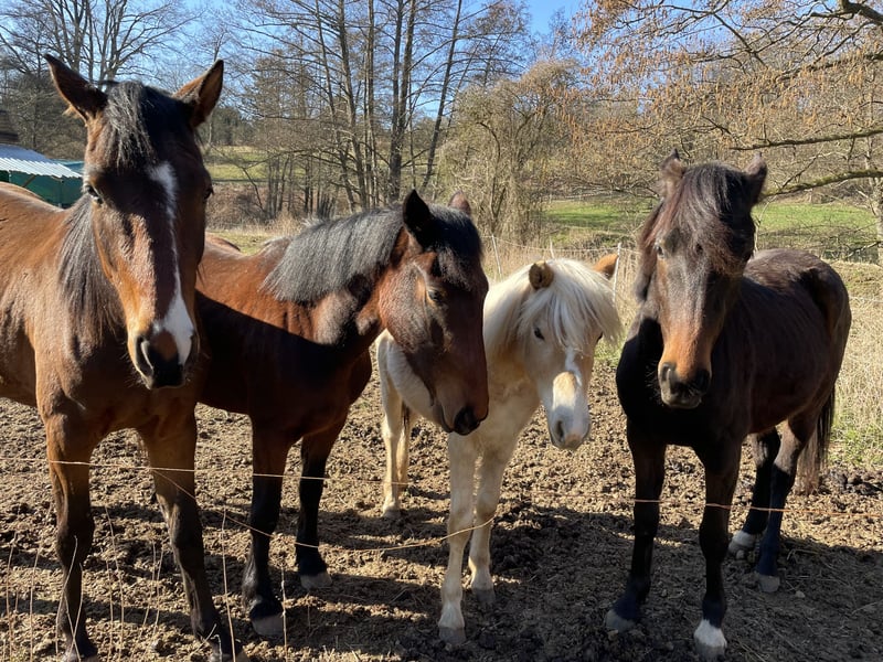 Wir geben unsere brave 4 jährige Ponystute ab. Sie ist bei uns geboren und alters- und jungpferdegerecht das ganze Jahr auf großzügigen Koppeln aufgewachsen. Momentan steht sie in einer gemischten Herde (2 Jährlinge, eine 2 Jährige und zwei 3 Jährige). Sie ist momentan eher ranghoch, stand aber auch schon mit älteren Pferden zusammen und weiß sich da entsprechend unterzuordnen. Die Mutter ist ein ungarisches Pony, der Vater leider unbekannt. Sie besitzt einen Pass, ist regelmäßig geimpft und entwurmt. Sie ist absolut Schmiede- und Verladefromm und kennt das Fohlen ABC. Letzten Sommer wurde sie schonend an den Sattel und Gurt gewöhnt. Danach haben wir ihr die Chance gegeben sich körperlich noch voll zu entwickeln. Reitergewicht kennt sie bis jetzt nicht, sollte aber kein Problem darstellen. Bei Bedarf kann sie je nach Entfernung auch gebracht werden. Bei Interesse beantworte ich gerne alle Fragen.
