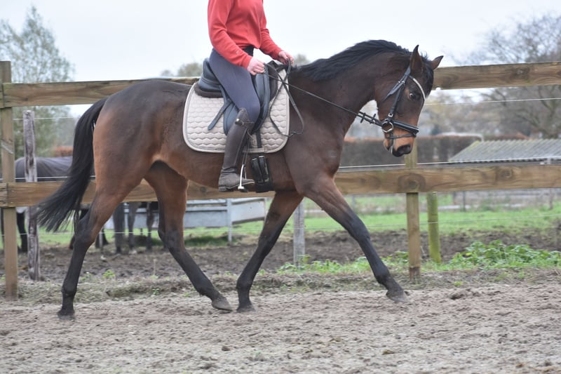 Hier is Yvy, een prachtige jonge dame van 3,5 jaar oud met een stokmaat van ca. 1.55m. Haar afstamming is Doyen x Little Nugget. Ze heeft een chique, elegante bouw en weet zeker de aandacht te trekken zodra je de stallen binnenloopt. Ze heeft een ontzettend lief en eerlijk voorkomen. Ivy heeft 3 fantastische gangen en is daarmee geschikt voor meerdere takken van de sport. Ondanks haar jonge leeftijd pakt Yvy het werk hier heel goed op. Ze werkt graag samen met haar ruiter en doet haar best om alles zo goed mogelijk te begrijpen. Momenteel wordt ze bij ons dressuurmatig en recreatief doorgereden en laat ze daarbij een fijne instelling en veel potentie zien. Ze is geheel vrij van gebreken. Prijs 3950- incl. merkzadel en dekje Ivy is incl. bloedafname goedgekeurd voor de recreatie. Voor een betere uitslag van de keuring zou het helpen als ze voor op een ijzer zou staan. ( gevoelige zolen)