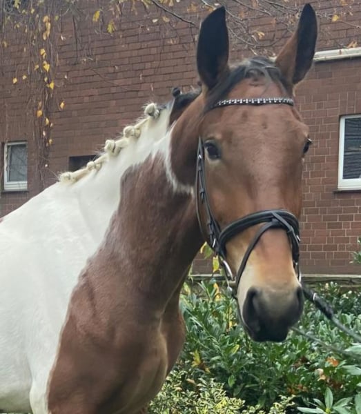 This young mare is currently working solidly in all three gaits under saddle and always strives to do her best. She is a horse that is still growing and developing physically and is at the beginning of her training. Therefore, she is currently offered at a favorable price, which will increase as her training progresses. If you are interested or have any further questions about the horse, please feel free to call me (please no WhatsApp messages; I can call you back if needed). Phone: 0171 7718174