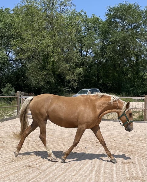 Un cadeau de la Vie qui se prénomme Loréa Dos Prados...💝 ❣️Ce qui la caractérise : la beauté, le charisme, la subtilité, l'intelligence, la pétillance, la facilité de lien avec les humains... ❣️Loréa est une jument exceptionnelle, en quête de son humain(e) de cœur qui saura voir en elle l'être merveilleux qu'elle est. La Belle aspire à un lien privilégié avec son humain(e), tout en conscience, pour une vie riche en expériences et en amour partagé. ❣️Loréa est née le 19 février 2021 et a des papiers OC. Elle est la fille de Romane (photo ci-dessous), hispano-barbe-arabe (de son vrai nom Romance) par Djebel Des Balmes (AB), et de Sénador Dos Prados (photo ci-dessous), étalon pp Crème d'origine Lusitanienne, champion de France des 2 et 3 ans en 2008 et 2009 et vice-champion des mâles en race Crème en 2010. ❣️Elle mesure 1m60 et a une sublime robe palomino cuivrée. Elle a un corps harmonieux et de belles allures amples et élastiques. ❣️Dotée d'une grande facilité d'apprentissage, toujours très curieuse et enthousiaste, elle sera une jument très polyvalente. Le débourrage sera d'ailleurs pour elle une formalité. ❣️Loréa aspire à une vie en troupeau en plus de son lien unique avec sa ou son humain(e). Elle vit en troupeau depuis toujours, éduquée par ses parents, et entourée par sa famille. ❣️Elle bénéficie d'une alimentation de très bonne qualité, ainsi que des soins réguliers en ostéopathie, en soins énergétiques et en communication animale. Elle est bien sûr vermifugée, parée et a déjà vu le dentiste. ❣️Si Loréa touche votre cœur, avec plaisir pour vous accueillir et venir la rencontrer sur son lieu de vie en Ariège. 🙏Plus de renseignements en MP ou au 0616824610