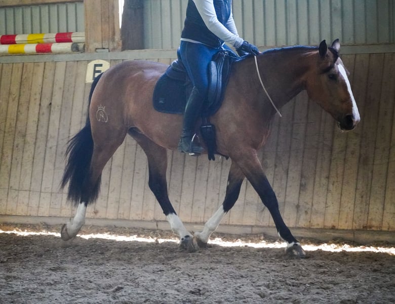 Doladera - yegua - aproximadamente 1,58-1,60 m *Doladera* es una yegua impresionante, muy versátil y con una belleza excepcional. Es una yegua muy tranquila y valiente. Se desplaza con gracia en la pista y presenta tres excelentes movimientos de galope, además de ser muy cómoda en la silla. Ha demostrado ser muy dócil en el trabajo con la cuerda de cuello. Se desplaza sola y en grupo en el campo, incluso en entornos desconocidos, con calma y confianza. Doladera atraviesa agua, pasa por lonas, vehículos y obstáculos diversos sin problema, mostrando una gran nerviosidad y serenidad. También realiza saltos con facilidad. Es una yegua que abre muchas puertas, una auténtica versátil. No es terca, ¡con ella se disfruta mucho! ¡NO DEJE DE VER SU VIDEO! Visualmente, tiene un tipo de semental, simplemente hermosa. En su trato, es muy sociable, cariñosa y dulce. Doladera es un caballo de ensueño en todos los aspectos. Un video actual se encuentra en el anuncio o en el siguiente enlace: https://www.youtube.com/watch?v=UV01VwQVz7c Hípica Dederichs – Su socio para la compra de caballos Contacto y disponibilidad: Consultas exclusivamente por teléfono al 0173/9792139 Lunes a viernes: 09:00 – 18:00 h Sábado: 09:00 – 15:00 h Domingo: día de descanso ¡Síganos en redes sociales! Viva nuestro día a día con los caballos en venta en Instagram, TikTok y Facebook en Hípica Dederichs Descuento: Al llevarse su nuevo caballo de ensueño de inmediato, recibe un 5 % a 10 % de descuento Prueba de monta y exhibiciones: • Prueba de monta: 40 € por caballo (máximo 2 jinetes), el importe se descontará en la compra • Festivos: prueba de monta 50 € • Exhibición por nuestros preparadores: 30 € por caballo (monta previa, trabajo en tierra, etc.) Examen de compra y transporte: • Muchos de nuestros caballos ya disponen de un informe de salud (AKU) • Por supuesto, puede traer su propio veterinario • Podemos organizar un examen veterinario • También le ayudamos con el transporte a su nuevo hogar Otros caballos en venta: En nuestro establo hay más caballos en venta que aún no están en línea. Si su caballo soñado aún no aparece, no dude en contactarnos. Información importante: • Las medidas de alzada son aproximadas y no están medidas con precisión • Todas las descripciones son evaluaciones subjetivas del vendedor y no garantizan características específicas