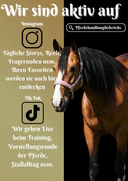 Doladera - Stute - ca. 158-1,60 cm *Doladera* ist eine bildschöne super vielseitige Stute. Total cool und unerschrocken. Geht schön in der Bahn und bringt 3 super GGA mit, sehr sitzbequem dazu. Sie hat sich super auf Halsring reiten lassen. Geht alleine und in der Gruppe ins Gelände, auch in fremder Umgebung gelassen. Doladera geht durchs Wasser, über Planen, Fahrzeuge, Planen usw. nimmt sie absolut nervenstark und gelassen. Sie macht auch einen netten Sprung. Ein Pferd dem alle Türen offen stehen. Allrounderin durch und durch. Nicht stutig, mit ihr hat man viel Freude !!! SCHAUEN SIE SICH UNBEDINGT IHR VIDEO AN !!! Optisch im hengsttyp stehend, einfach nur wunderschön. Im Umgang Menschenbezogen, verschmust und lieb. Doladera ist ein Traumpferd in allen Hinsichten. Ein aktuelles Video finden Sie hier in der Anzeige oder unter folgendem Link: https://www.youtube.com/watch?v=UV01VwQVz7c Pferdehandlung Dederichs – Ihr Partner für den Pferdekauf Kontakt & Erreichbarkeit: Anfragen bitte ausschließlich telefonisch unter 0173/9792139 Montag – Freitag: 09:00 – 18:00 Uhr Samstag: 09:00 – 15:00 Uhr Sonntag: Ruhetag Folgen Sie uns auf Social Media! Erleben Sie unseren Alltag mit den Verkaufspferden auf Instagram, TikTok & Facebook unter Pferdehandlung Dederichs Rabatt: Bei sofortiger Mitnahme Ihres neuen Traumpferdes erhalten Sie zwischen 5 %– 10 % Rabatt Probereiten & Vorführen: • Probereiten: 40 € pro Pferd (max. 2 Reiter), Betrag wird beim Kauf angerechnet • Feiertage: Proberitt 50 € • Vorführung durch unsere Bereiter: 30 € pro Pferd (Vorreiten, Bodenarbeit etc.) Ankaufsuntersuchung & Transport: • Viele unserer Pferde besitzen bereits eine AKU • Sie können selbstverständlich Ihren eigenen Tierarzt mitbringen • Gerne organisieren wir eine Untersuchung • Wir unterstützen Sie auch gerne beim Transport ins neue Zuhause Weitere Verkaufspferde: In unserem Stall stehen weitere Verkaufspferde, die noch nicht online sind. Falls Ihr Traumpferd noch nicht dabei ist, zögern Sie nicht, uns zu kontaktieren. Wichtige Hinweise: • Stockmaß-Angaben sind geschätzt und nicht exakt nachgemessen • Alle Beschreibungen sind subjektive Einschätzungen des Verkäufers und keine zugesicherten Eigenschaften