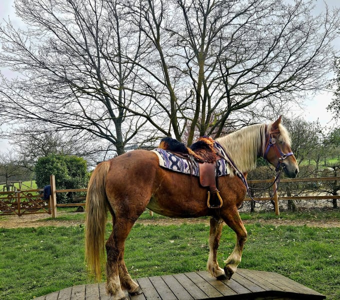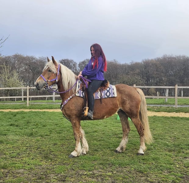 Ricarda Haas is here: Reitershop Haas. trdoepsSon0c8li6g7hm.4l58u2m9394769c4a4mu 96f2hnt02M5u0mt617 · Linkenbach · Shared publicly Baroque Chestnut Mare With E-Pass and AKU documentation. * 5 years old * Approx. 1.56 m (about 16.1 hh) * €6,500 🥕🥕 ✔️ Friendly and sociable nature – ideal for leisure riding, therapy, and riding school use ✔️ Well-behaved in handling – relaxed when grooming, leading, and saddling ✔️ A real eye-catcher *Our ponies & horses:* All our animals are regularly dewormed, introduced to the farrier, and receive osteopathic treatment if needed. We place great importance on species-appropriate husbandry and fair interaction. *Additional information:* We want to make buying your dream horse as easy as possible! We can gladly organize accessories and transportation. Our farm shop also offers a wide selection of used Western saddles from premium brands, as well as other accessories like bridles, halters, and more. *Our service for you:* To get to know a horse in peace, we offer *trial rides for €35*. If you wish to test more horses, each additional ride costs only €25. You can ride, be led, go for a walk, or simply spend time with her. If you buy on the same day, this fee will of course not be charged. *Special offers for our customers:* - 💰 Discount for immediate pickup or same-day transport: • Price category 1: €100 off • Price category 2 (from €5,000): €250 off - We accompany you with transparent trial rides throughout the entire sales process to help you find the perfect horse. *Important notes:* - All images and image rights belong exclusively to us; external use is not permitted. - As this is a living animal, our descriptions are based on the impressions of the caretakers and do not constitute guaranteed properties.