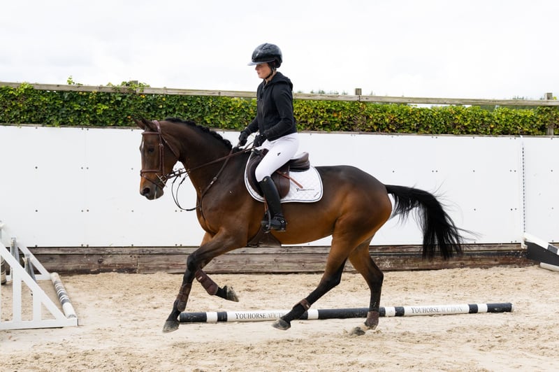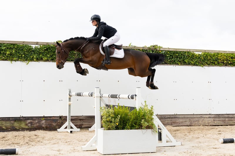 The five-year-old Promise is ready to jump courses. She is a very nice blood mare who handles everything easily and with pleasure. Every jump is spot-on, and that’s exactly how we like them. Her sire is the AES-approved stallion Jorlan II (who cleared 1.25 meters in show jumping at age six last year), combining top genetics from Verdi, Heartbreaker, and Voltaire. Her dam, Dorte, descends from the French Nations Cup stallion Flipper d’Elle. She has already produced two excellent show jumpers: Io (competing at 1.40 m level) and Karim (at 1.35 m level). The granddam, Nicce (by Cantus), is a daughter of the renowned 1.60 m Grand Prix mare Audi’s Jikke, ridden by Eric van der Vleuten, and dam of the KWPN stallion Vleut (1.60 m Grand Prix) as well as two other jumpers at 1.35/1.40 m. Audi’s Jikke is also the great-grandmother of the 1.60 m Grand Prix horses Olympike van ’t Merelsnest with Petronella Andersson, Elwikke with Maikel van der Vleuten, and Eckhart 2 with Jörg Oppermann.