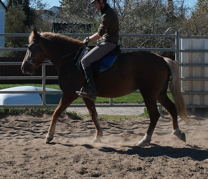 Bewegungsstarke,fleißige und sehr menschenbezogene kleine Warmblutstute. Sie ist sehr gut in allen Gangarten auf dem Platz und in der Halle geritten. Weiterhin ist sie problemlos allein im Gelände und Straßenverkehr geritten. Geländereiten,Western,Schulbetrieb Sicher im Straßenverkehr und Gelände. 6 Jahre, 153cm Bei Interesse bitte anrufen, keine Mail! Für eventuell auftretende Fehler in der Beschreibung gilt keine Gewähr! Tel.: 0173-3843407 Da es sich um ein lebendes Tier handelt, sind dies subjektive Eindrücke des Anbieters und keine zugesicherten Eigenschaften des Tieres! Ständig schöne Fahr-u.Freizeitpferdesowie neue Kutschen verschiedener Modelle preiswert im Angebot. Anschrift Stall: 99628 Buttstädt, Oberwendenstraße 39