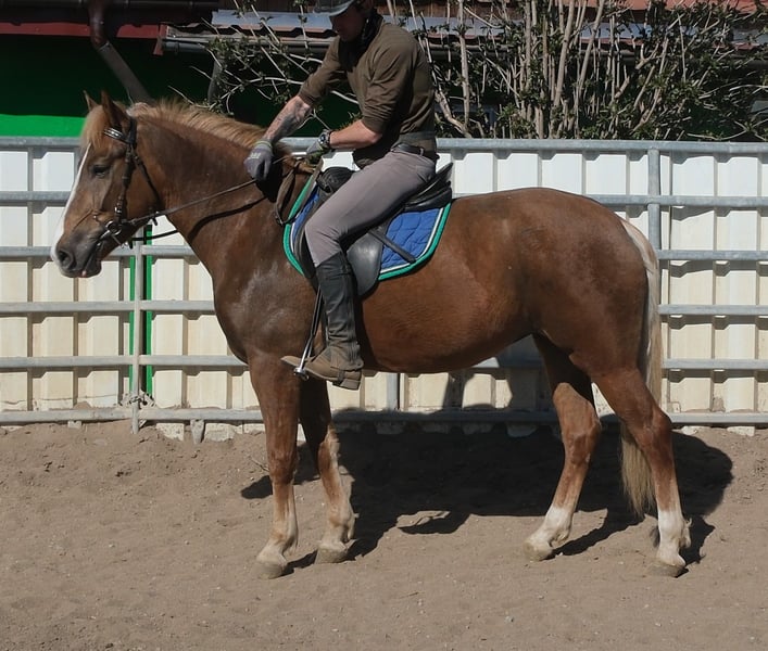 Bewegungsstarke,fleißige und sehr menschenbezogene kleine Warmblutstute. Sie ist sehr gut in allen Gangarten auf dem Platz und in der Halle geritten. Weiterhin ist sie problemlos allein im Gelände und Straßenverkehr geritten. Geländereiten,Western,Schulbetrieb Sicher im Straßenverkehr und Gelände. 6 Jahre, 153cm Bei Interesse bitte anrufen, keine Mail! Für eventuell auftretende Fehler in der Beschreibung gilt keine Gewähr! Tel.: 0173-3843407 Da es sich um ein lebendes Tier handelt, sind dies subjektive Eindrücke des Anbieters und keine zugesicherten Eigenschaften des Tieres! Ständig schöne Fahr-u.Freizeitpferdesowie neue Kutschen verschiedener Modelle preiswert im Angebot. Anschrift Stall: 99628 Buttstädt, Oberwendenstraße 39