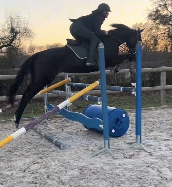 Zu Verkaufen ⭐️ Geschlecht: Stute Alter: 5 Jahre Rasse: AQPS (Selle Français x Vollblut) Farbe: Schwarz-Pangare Größe: 1,63 m Beschreibung: Kachou (richtiger Name: Konfinoise) ist eine junge Stute, die kürzlich mit der Arbeit begonnen hat. Sie zeigt sich mutig, vielseitig und hat eine schöne Springqualität 🌸. Sie hat bereits ihren ersten kleinen Parcours absolviert. Es ist eine freundliche Stute, mit viel Blut und Energie! Perfekt für einen Reiter, der Freude an einem motivierten Pferd hat. Sie sucht eine liebevolle Familie ⭐️. Sie ist im Département 72 zu sehen, eine Proberitt ist möglich. Der Kauf auch per Video möglich. Ein Video vom Reiten auf dem Platz, beim Springen und im Gelände ist vorhanden, aber ich konnte es leider nicht in die Anzeige hochladen. Bitte kontaktieren Sie mich privat, wenn Sie Interesse haben, um das Video zu sehen. 💰 7.500 €
