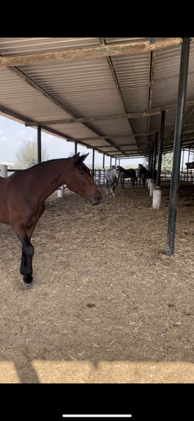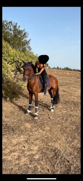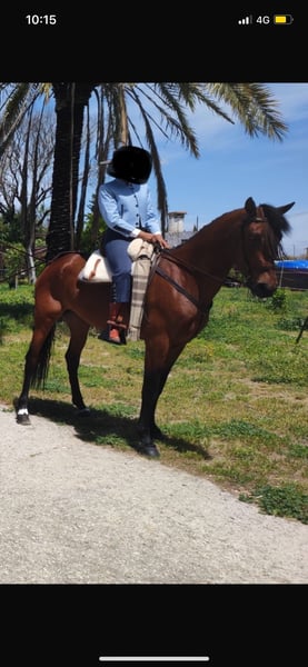 Vendu, une jumentale baie croisée de 6 ans (née en 2019), mesurant 1,65 m au garrot. Très noble, elle est montée en dressage classique et en dressage vaquero, réalisant des exercices latéraux (dos intérieur, croupe intérieure, et début de soutien). Elle a également commencé à faire des changements de pied en l'air et le pas espagnol. C’est une jument très expressive et travailleuse, parfaite pour continuer à la monter avec beaucoup de cœur et de noblesse. Elle a participé à des foires, des randonnées et à San Anton sans aucun problème. C’est une jument vraiment spectaculaire. Plus d’informations en privé.