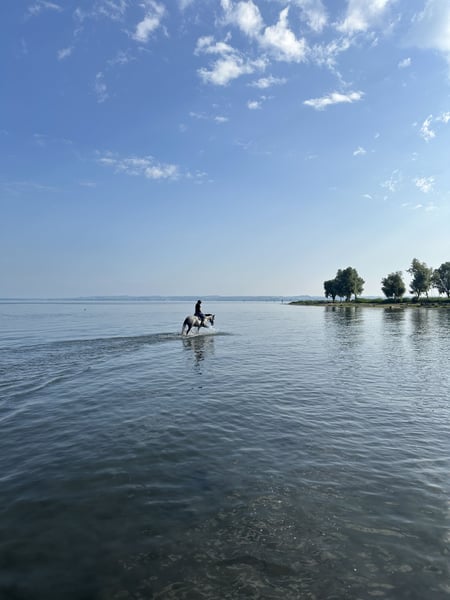 Yegua poni de 8 años (blanca) – Poni español – altura de 1,48 m Vendo mi poni blanco de 8 años, Rondena. Se ofrece como animal de compañía debido a un diagnóstico médico. Actualmente se encuentra en proceso de recuperación. Tras una doma suave, puede ser posible montar de manera limitada. Debido a su diagnóstico, la opción de saltar ya no será posible a largo plazo. Tiene un carácter fuerte, atento y siempre alerta. Rondena no es adecuada para jinetes principiantes. Ha sido montada en competición en salto y siempre se ha mostrado muy tranquila y sociable en concursos y salidas. Los traslados no le representan ningún problema. Es tranquila para el transporte y para el herrado, actualmente lleva casco natural. - Casco natural - Tranquila para el transporte - Vacunada y desparasitadas regularmente - Se entrega con equipo completo Para mí, es muy importante encontrarle un hogar amoroso con expectativas realistas. Más información, informes médicos y detalles, con gusto en una conversación personal.