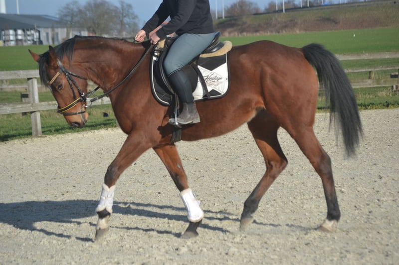 Nice all-round mare, 7 years old and 16.1 hands high. She is well-behaved and patient in the grooming area, easy to ride, and enjoys jumping. She is social with her peers and free of any vices. Additionally, she is calm with the farrier and the veterinarian. Location: Wuustwezel For more information or a video, please send a WhatsApp message to +31 645719488.