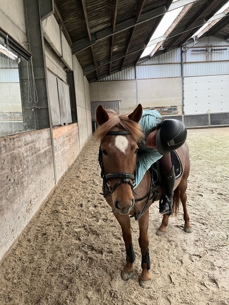 Nikkie ist ein hübsches Pony mit einer Größe von etwa 1,40 m und ist 9 Jahre alt. Sie ist eine echte Schmusekatze im Umgang, bleibt beim Putzen und Auftrensen stets ruhig stehen und liebt es, Aufmerksamkeit zu bekommen! Unter dem Sattel ist sie eine liebevolle Begleiterin, läuft entspannt ihre Runden im Reitplatz. Sie ist kein Dressurwunder, sondern einfach ein angenehmes, unkompliziertes Pony. Gerne macht sie auch kleine Sprünge, und Ausritte im Gelände findet sie ebenfalls schön. Bei einem unsicheren Reiter kann sie jedoch manchmal einen kleinen Buckler zeigen! 🥰 Nikkie ist gesund – sie hat keinen Stammbaum, besitzt aber einen niederländischen Pass. Außerdem ist sie regelmäßig geimpft und entwurmt. Sie kann rund um die Uhr draußen in einer Herde verbringen oder nachts im Stall stehen! Kurz gesagt: Wenn du nach einem unkomplizierten, lieben, gesunden und zuverlässigen Pony suchst, könnte Nikkie genau das Richtige für dich sein 🙂
