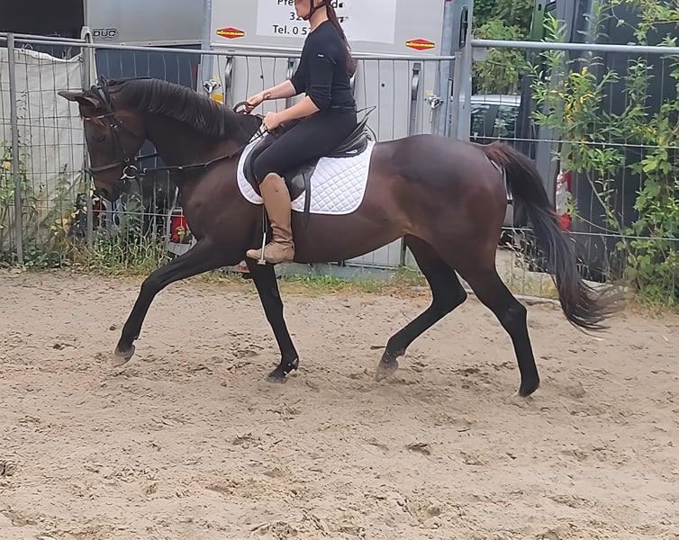 Star (apodo Sternchen) es un verdadero atractivo. Con 8 años, está bien entrenado y es muy equilibrado. Mide aproximadamente 152 cm (es decir, un poco más de la medida de pony). Interesante tanto para niños como para adultos más pequeños. Ideal también para el inicio en competiciones. Muy cómodo de montar. Suelto hacia abajo, pero igualmente sin problemas para colocarse en una perfecta posición vertical. Tres dinámicos y agradables a la silla GGA. También en el salto, esta dulce yegua sabe convencer. Un caballo que hace latir más rápido los corazones de las niñas. Si es necesario, se puede entregar con un nuevo equipo completo por un pequeño recargo. Transporte posible. La revisión veterinaria de compra también puede ser realizada por su propio veterinario, incluyendo radiografías y análisis de sangre. Esperamos su llamada al 01774289729. Las consultas por escrito no serán respondidas. Las llamadas con número oculto serán rechazadas automáticamente.