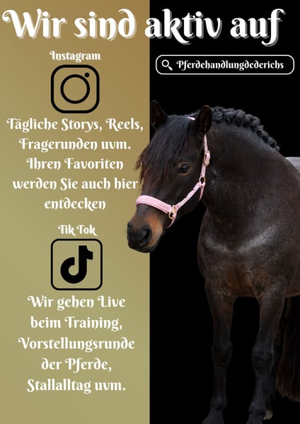 Hetka ist eine 2017 geborene Stute ca. 1,52 cm *Hetka* bildschöne und super coole Allrounderin. Super schön zu reiten in der Bahn, dabei leicht in der Anlehnung und ganz sitzbequem. Bringt schöne GGA mit, geht Außengalopp, Schritt-Galopp Übergänge und ist dabei total entspannt. Am Halsring und ohne Sattel lässt sie sich zudem auch reiten. Am Sprung zeigt sie auch viel Freude und das ausreiten auch in fremder Umgebung macht ihr nichts aus. Hetka geht durchs Wasser, über Planen und auch das turnen auf ihr, lassen sie unbeeindruckt. Sie ist ein Traumpferdchen !!! SCHAUEN SIE SICH UNBEDINGT IHR VIDEO AN !!! Im Umgang unkompliziert. Verpassen Sie nicht die Chance auf so ein Außnahmepferdchen. Ein aktuelles Video finden Sie hier in der Anzeige oder unter folgendem Link: https://www.youtube.com/watch?v=RjamoBaua_E Pferdehandlung Dederichs – Ihr Partner für den Pferdekauf Kontakt & Erreichbarkeit: Anfragen bitte ausschließlich telefonisch unter 0173/9792139 Montag – Freitag: 09:00 – 18:00 Uhr Samstag: 09:00 – 15:00 Uhr Sonntag: Ruhetag Folgen Sie uns auf Social Media! Erleben Sie unseren Alltag mit den Verkaufspferden auf Instagram, TikTok & Facebook unter Pferdehandlung Dederichs Rabatt: Bei sofortiger Mitnahme Ihres neuen Traumpferdes erhalten Sie zwischen 5 %– 10 % Rabatt Probereiten & Vorführen: • Probereiten: 40 € pro Pferd (max. 2 Reiter), Betrag wird beim Kauf angerechnet • Feiertage: Proberitt 50 € • Vorführung durch unsere Bereiter: 30 € pro Pferd (Vorreiten, Bodenarbeit etc.) Ankaufsuntersuchung & Transport: • Viele unserer Pferde besitzen bereits eine AKU • Sie können selbstverständlich Ihren eigenen Tierarzt mitbringen • Gerne organisieren wir eine Untersuchung • Wir unterstützen Sie auch gerne beim Transport ins neue Zuhause Weitere Verkaufspferde: In unserem Stall stehen weitere Verkaufspferde, die noch nicht online sind. Falls Ihr Traumpferd noch nicht dabei ist, zögern Sie nicht, uns zu kontaktieren. Wichtige Hinweise: • Stockmaß-Angaben sind geschätzt und nicht exakt nachgemessen • Alle Beschreibungen sind subjektive Einschätzungen des Verkäufers und keine zugesicherten Eigenschaften