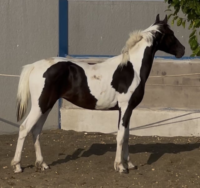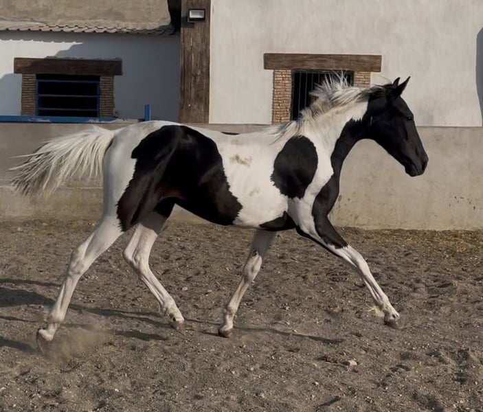 Espectacular potro tobiano con 27 meses 1,45 de alzada , con un muy buen carácter que lo va a hacer apropiado para niños y también destacar que será un animal apropiado para la reproducción ya que es homocigoto en el gen tobiano TO/TO . Es un potro que está criado en familia tocado desde pequeño y tiene una doma de cuadra muy avanzada . Da cuerda perfectamente, sube al remolque , da las cuatro patas etc