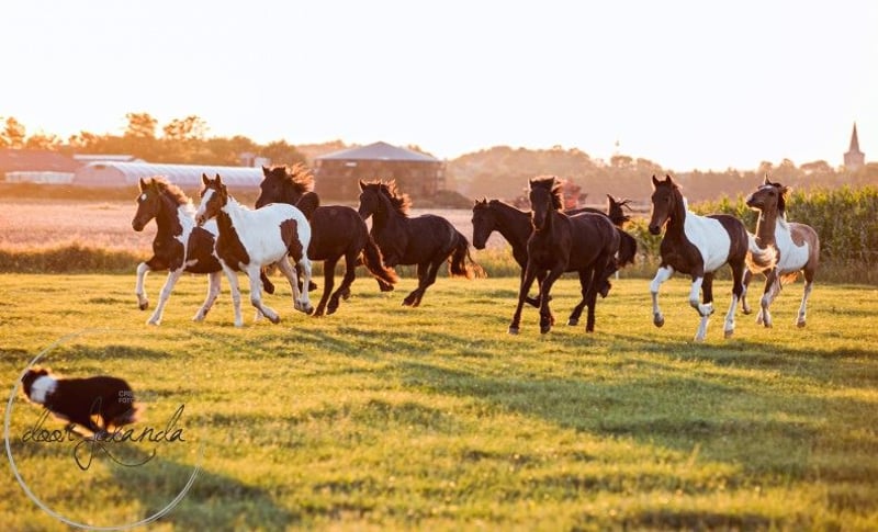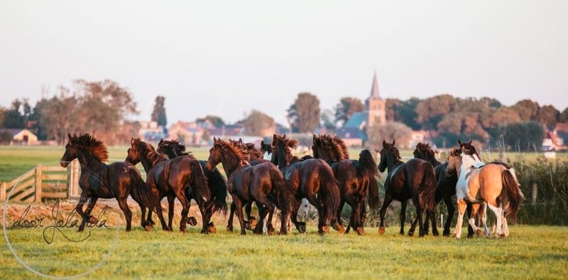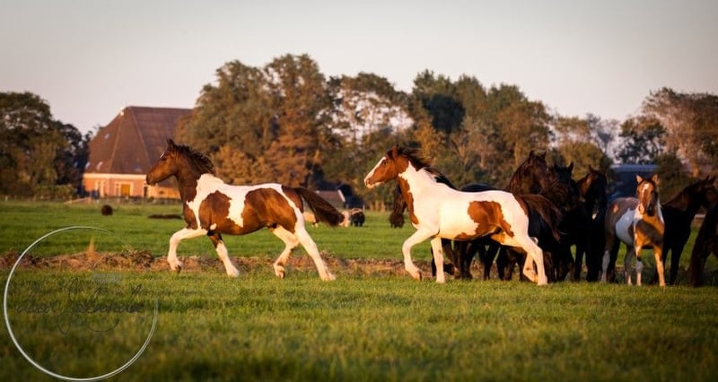 Ce jeune est vraiment quelque chose de spécial à voir ! Il a un magnifique dunskin (fourrure de faucon) avec des rayures d'anguille et il est vraiment magnifiquement dessiné. Il attire vraiment tous les regards. Il est à la recherche d'une belle et douce carotteuse. Nous ne connaissons pas exactement son pedigree. Probablement poney d'équitation allemand x Barock pinto x Fjord. Nous estimons qu'il mesurera entre 1,50 et 1,55m. Il connaît la chose la plus importante dans la vie d'un cheval : l'ABC du troupeau. Nous ne faisons que de l'élevage et nous n'entraînons pas les chevaux, de sorte que tous nos chevaux sont encore complètement verts et ne sont pas encore habitués au licou. Le grand avantage est que les chevaux sont bien socialisés dans le troupeau, qu'ils n'ont pas eu de mauvaises expériences et que vous pouvez leur enseigner tout ce que vous voulez. Nos chevaux ont et donnent beaucoup de confiance et apprennent rapidement. Chaque année, nous vendons environ 40 magnifiques poulains baroques pinto et frisons provenant de notre haras familial aux Pays-Bas. Et aussi des chevaux plus âgés (0-13 ans), tous encore verts et non débourrés. Nous élevons généralement sans papier généalogique pour que les chevaux restent abordables. Chez nous, vous trouverez certainement le cheval de vos rêves. Nos chevaux grandissent naturellement dans de grands troupeaux et sont donc très bien socialisés. Ils y mènent une vie de cheval de rêve : au printemps et en été dans de vastes prairies. En hiver, dans de grandes écuries collectives. Un bon caractère, frais, fort, sain et doux sont des exigences importantes pour nous dans l'élevage. Vous pouvez nous trouver à Tzummarum, près de Leeuwarden, et nous serions heureux de vous rencontrer. Contact : de préférence par téléphone ou par Whatsapp.